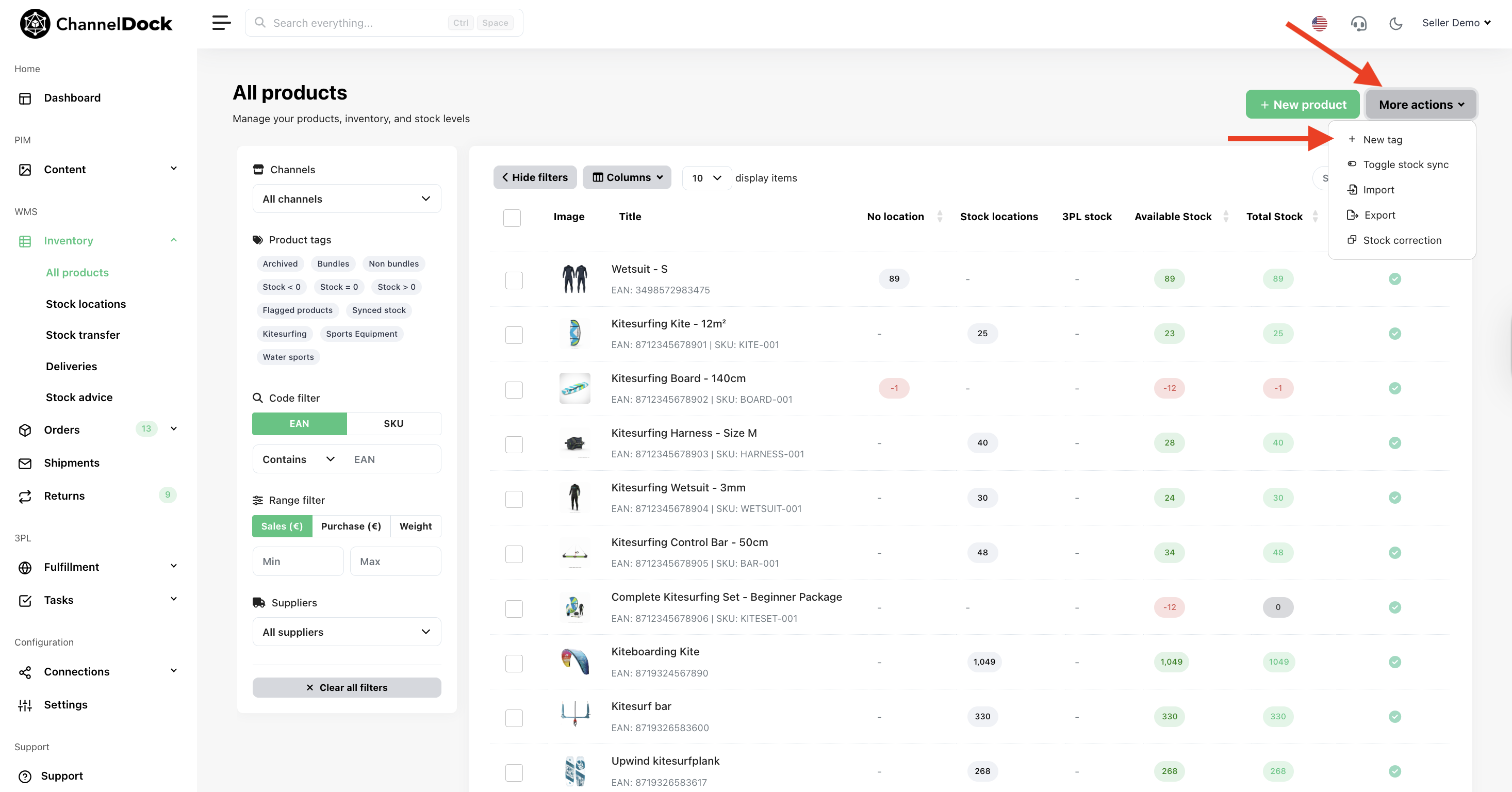 ChannelDock supports product tags to help you manage your products.